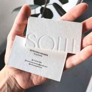 Si vas a estar ahí, una tarjeta personal con relieve letterpress dice más que cualquier presentación digital. Es la pieza que alguien guarda en vez de tirar.